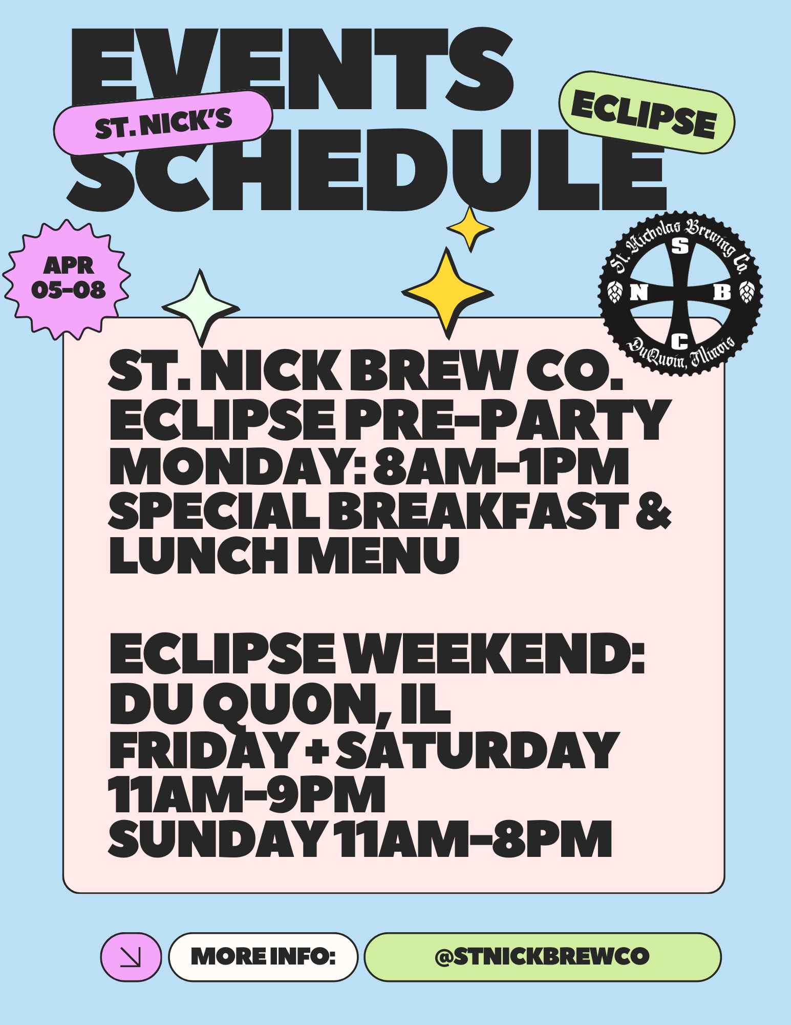 Back to All Events Eclipse Pre Party - Brunch & Lunch! Monday, April 8, 2024 8:00 AM 1:00 PM Google Calendar ICS