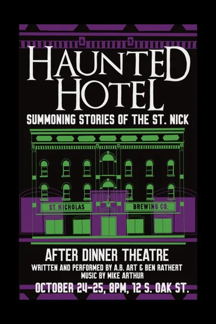 Join us this Halloween season as we summon the ghosts of the St. Nicholas Hotel in a haunted after dinner theater experience hosted by ARThaus Production. This show features ghost stories about local legends, music, shadowy figures, and even a murder most foul.
